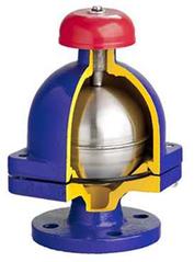 Body Material Nominal Pressure Nominal Diameter Maximum Temperature A Gr ey cast iron C 16 bar DN 25 100° C Features High tightness Compact settlement Environment friendly No maintenance Flanges drilled acc EN 1092-2 Application De-aeration of water pipeline Montage in the highest point of the pipeline